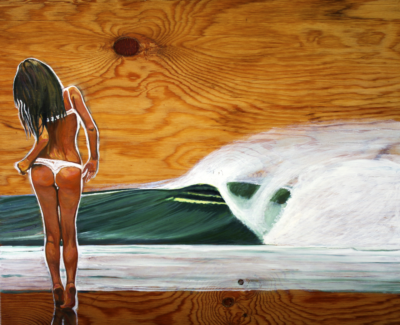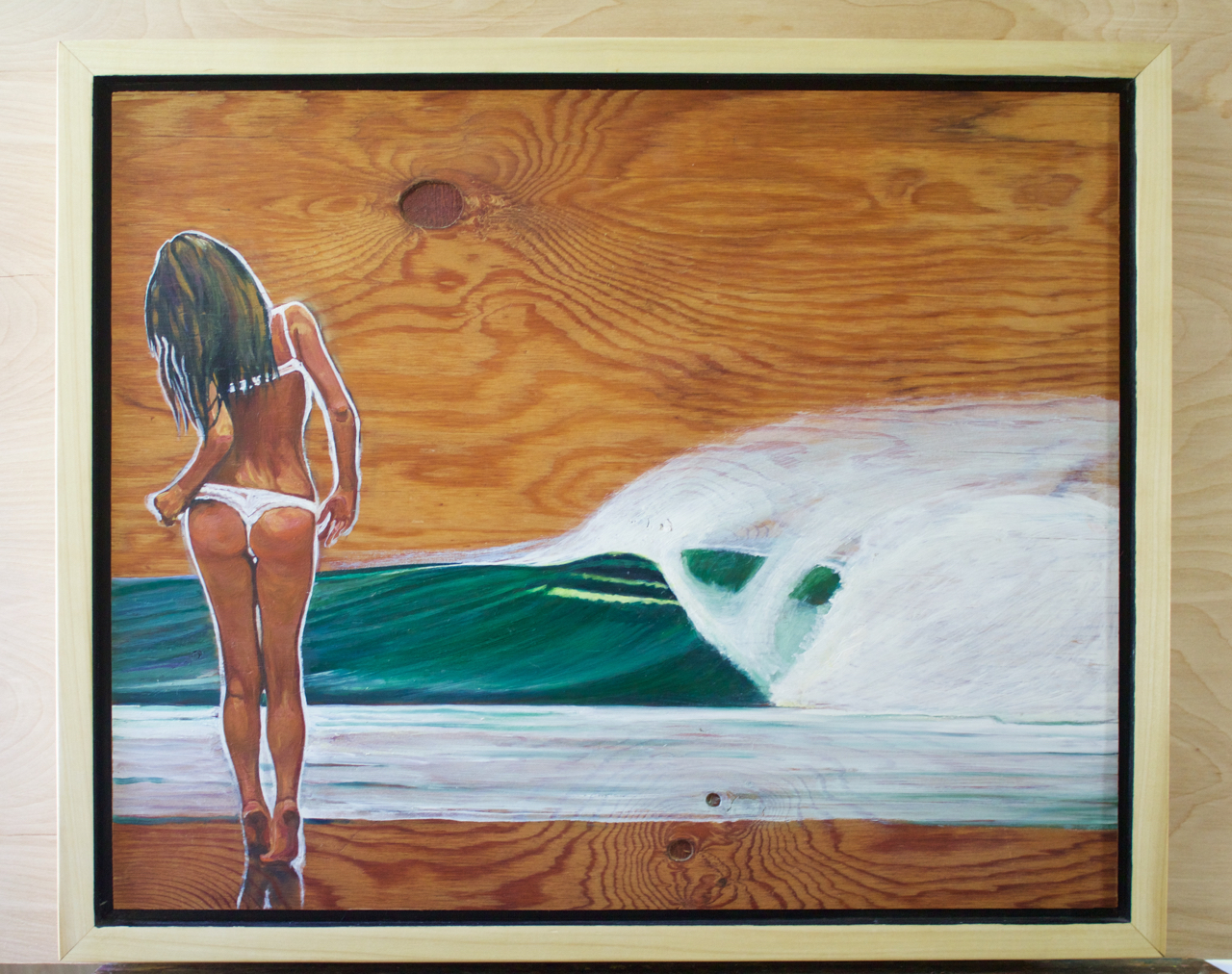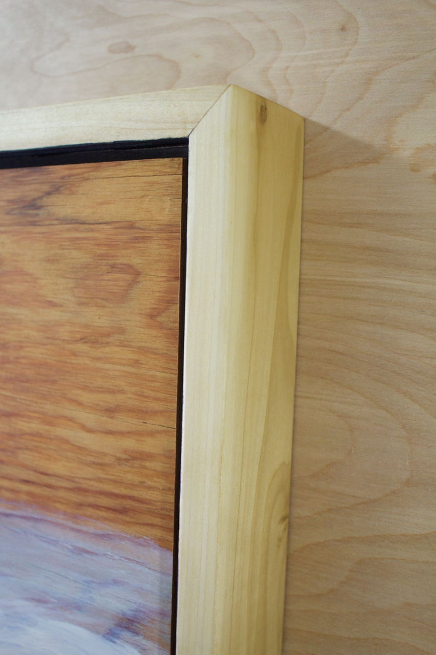 An original oil painting on aged plywood. Handmade poplar frame polished with 5 layers of tung oil 18.75" x 22.75" x 2.75"