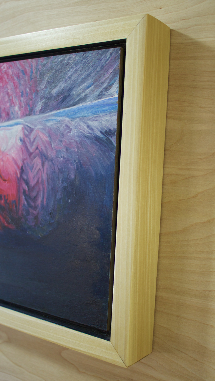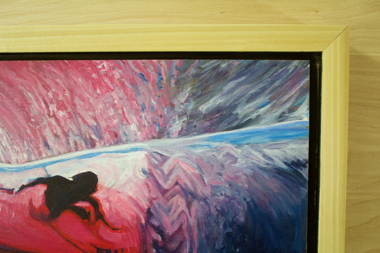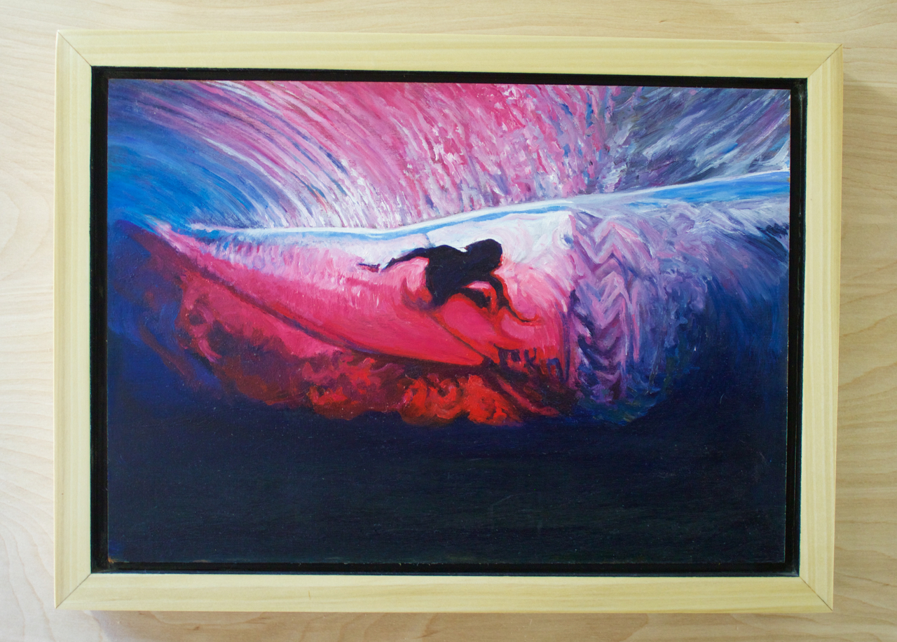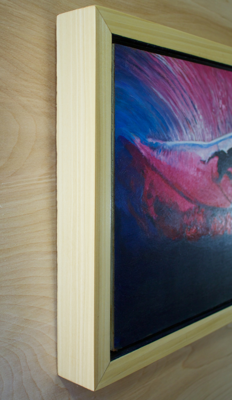 An original oil painting on birch plywood. Handmade poplar frame polished with 5 layers of tung oil. 11.75" x 16" x 1.75" A painting inspired by Australian water photographer Matt Shepard