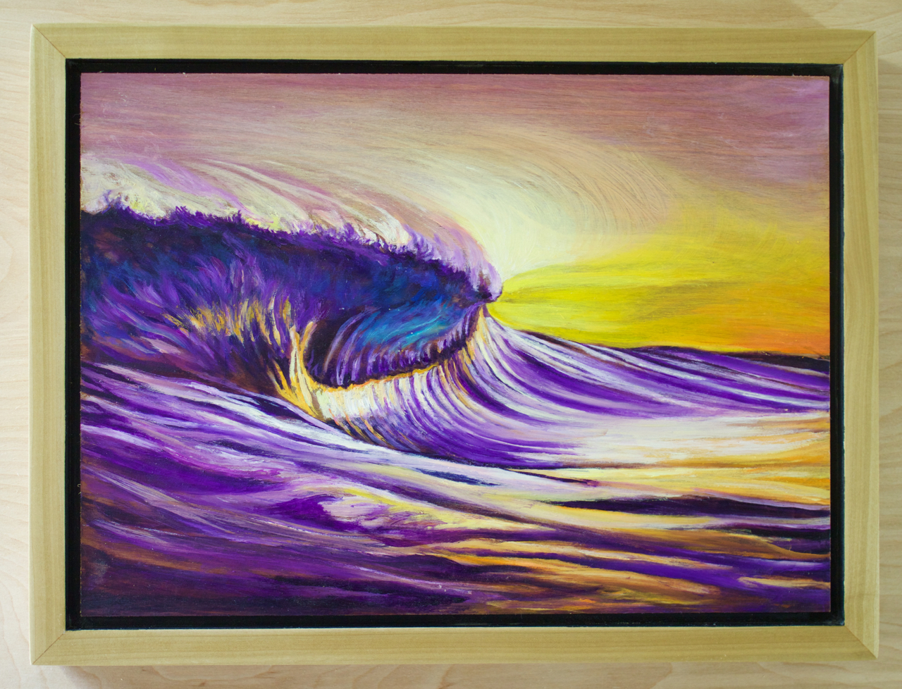 This wave is located in Australia. Framed in poplar wood and polished with 5 layers of tung oil. frame size is 12.75" x 17"