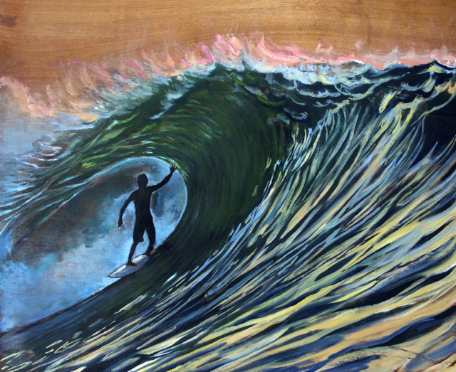 "The Claim" is an original oil painting on wood created for Macaronis Resort in Indonesia. It was painted by Phil Goodrich on location in March of 2012 on the island of South Pagai in the Mentawai Island chain